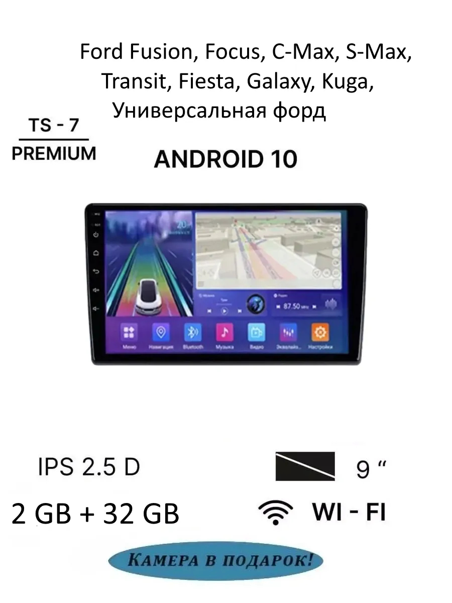 2 DIN магнитола TS7 для автомобиля Ford Fusion, Focus, C-Max, S-Max, Transit, Fiesta, Galaxy, Kuga, с камерой заднего вида в комплекте. Автомагнитола оснащена Full HD сенсорным экраном с IPS матрицей размером 7 дюймов. Автомобильный магнитофон работает на операционной системе Андроид, что открывает широкий функционал данной модели: bluetooth, подключение камеры заднего вида, GPS навигация, встроенный микрофон, подключение сабвуфера, радио, WiFi, просмотр видео, установка Android приложений из Плеймаркета, встроенный эквалайзер. На головное устройство можно установить ваши любимые приложения, такие как проигрыватель Яндекс Музыка, навигатор Яндекс Карты. Андройд 2дин магнитолла подключается к мобильному телефону блютузом без использования аукс, что позволяет безопасно совершить звонок по телефону и установить беспроводное ссоеденение с мультимедийной системой. Процессорная автомагнитолла для Форд Фокус порадует качеством звука, а с помощью эквалайзера вы сможете настроить звук под аккустику салона вашего автомобиля. Поддерживается управление регулятором громкости и переключение треков кнопками на руле.2.5 стекло убурежет дисплей от мелких царапин, не давая экрану покрыться паутинкой. Несомненным приимуществом перед конкурентами являестя то, что 2din магнитафон можно установить в машину самостоятельно, в комплекте есть все необходимые аксессуары: переходная рамка, разъем, провода. Для локаций, где слабый радио и ГПС сигнал предусмотрены разьемы для подключения соответствующей антенны, благодаря чему значительно увеличивается качество зоны покрытия радиоприемника. Автотовары, автоэлектроника, это универсальный подарок любимому мужчине, мужу или парню на такие праздники как день рождения, 23 февраля, 14 февраля, новый год. / андроид