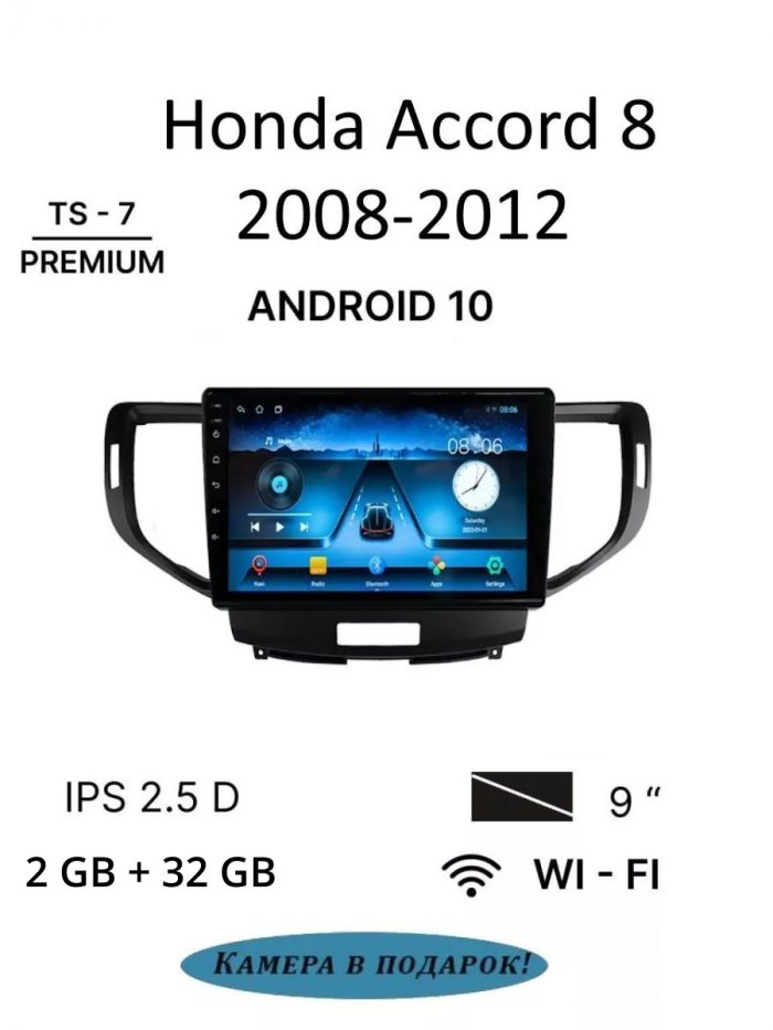 ВАЖНО!!! ПОДАРОК камера заднего вида. В наличии имеются переходные рамки почти для всех моделей авто, по приобретению которых обращайтесь в Вопросы! Штатная магнитола TS-7 для Honda Accord 8 2008-2012 Хонда Аккорд 8 2008-2012 — это головное устройство (ГУ) на платформе Android 10 для установки в автомобили через специальные модельные установочные комплекты (переходные рамки). Отличная недорогая альтернатива брендовым головным устройствам! Остановив выбор на этой модели, вы не переплачиваете за бренд, а получаете качественный аппарат с топовой начинкой, премиальным качеством, антибликовым IPS экраном, мощным звуковым процессором, набором всех необходимых функций. Данное головное устройство обладает следующими характеристиками: ОC Android 10; Процессор 4 ядра ARMv7 Processor rev 5 (v71); Внутренняя память 16/32Gb; Оперативная память 1/2Gb; Диагональ дисплея 9″; Разрешение экрана 1024×600; Тип матрицы экрана IPS (антибликовый); Тип стекла экрана 2.5D; Звуковой процессор: PT2313; Наличие Wi-Fi — Да; Разделение экрана — Да; Выбор цвета кнопок — Да; Язык меню — Русский язык; Встроенная навигация — есть; Наличие GPS приемника — Да; Наличие USB портов — USB 2.0; Поддерживаемые носители- USB Flash / HDD / MicroSD; Эквалайзер — 15 полос; Bluetooth — встроенный модуль (синхронизация телефонной книги, воспроизведение музыки); USB — 2 выхода USB 2.0; Функция разделения экрана; Подключение камеры заднего вида (для парковки); Возможность подключения мультируля; Возможность подключения дополнительных мониторов, внешнего источника A/V сигнала; Возможность подключения видеорегистратора. Запросы для поиска: Штатная автомагнитола андройд / Android магнитола / магнитола Honda Accord / магнитола Хонда Аккорд /Акорд / Магнитола Honda / Хонда/ 2+32GB / 4G / 1+16GB / головное устройство / мультимедиа / автомагнитола 2din / магнитола android / автозвук / музыка music / подарок мужу / подарок мужчине / навигатор навигация в машину / магнитола / Магнитола с интернетом / парню
