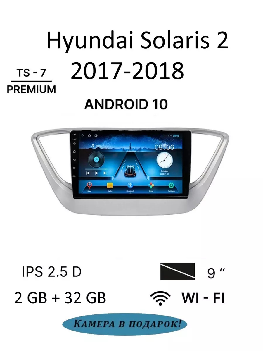 2 DIN магнитола TS7 для автомобиля Hyundai Solaris 2 2017-2018 с камерой заднего вида в комплекте. Автомагнитола оснащена Full HD сенсорным экраном с IPS матрицей размером 9 дюймов. Автомобильный магнитофон работает на операционной системе Андроид, что открывает широкий функционал данной модели: bluetooth, подключение камеры заднего вида, GPS навигация, встроенный микрофон, подключение сабвуфера, радио, WiFi, просмотр видео, установка Android приложений из Плеймаркета, встроенный эквалайзер. На головное устройство можно установить ваши любимые приложения, такие как проигрыватель Яндекс Музыка, навигатор Яндекс Карты. Андройд 2дин магнитолла подключается к мобильному телефону блютузом без использования аукс, что позволяет безопасно совершить звонок по телефону и установить беспроводное ссоеденение с мультимедийной системой. Процессорная автомагнитолла для Хендай Солярис порадует качеством звука, а с помощью эквалайзера вы сможете настроить звук под аккустику салона вашего автомобиля. Поддерживается управление регулятором громкости и переключение треков кнопками на руле.2.5 стекло убурежет дисплей от мелких царапин, не давая экрану покрыться паутинкой. Несомненным приимуществом перед конкурентами являестя то, что 2din магнитафон можно установить в машину самостоятельно, в комплекте есть все необходимые аксессуары: переходная рамка, разъем, провода. Для локаций, где слабый радио и ГПС сигнал предусмотрены разьемы для подключения соответствующей антенны, благодаря чему значительно увеличивается качество зоны покрытия радиоприемника. Автотовары, автоэлектроника, это универсальный подарок любимому мужчине, мужу или парню на такие праздники как день рождения, 23 февраля, 14 февраля, новый год.