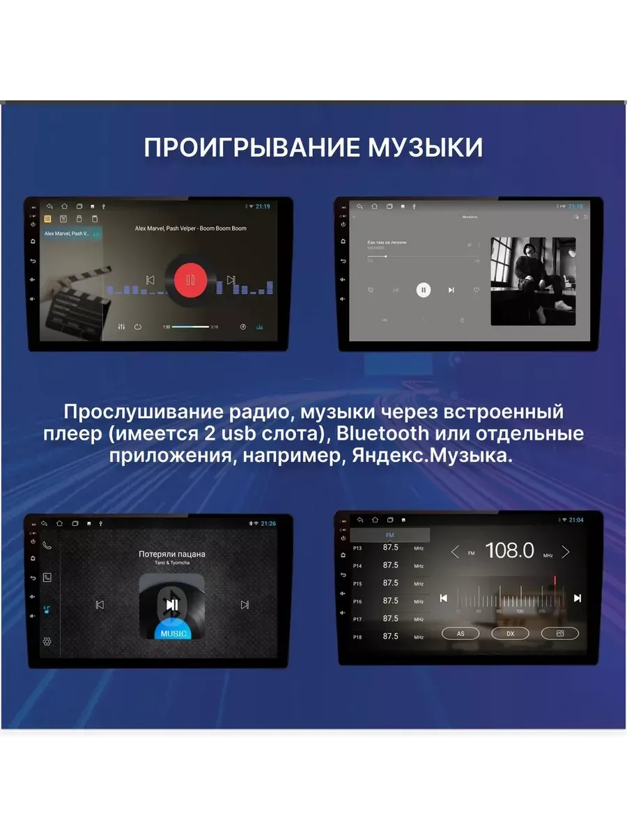 Магнитола для автомобиля Lada Vesta Cross Sport 2015-2019 Лада Веста Кросс Спорт 2015-2019 с экраном, автомагнитола обеспечивающим яркую разноцветную подсветку. Камера заднего вида в ПОДАРОК! Переходная рамка и провода для подключения входят в комплект к устройству, так же выносной микрофон и вентилятор охлаждения будет дополнительным бонусом к устройству!!! Автомагнитола сможет прочитать все видео и аудио форматы. Она рассчитана на качественное воспроизведение аудио- и видеофайлов в различных форматах, работу с выносными видеокамерами и сопряжение с другими компьютеризированными гаджетами. В наличии имеются комплекты под ваш автомоби ль, пишите в Вопросы! Lada Vesta Cross Sport 2015-2019 Лада Веста Кросс Спорт 2015-2019 — это универсальное головное устройство (ГУ) под ваш автомобиль на платформе Android 10 / 11, для установки в автомобили через специальные модельные установочные комплекты (переходные рамки). Сделает любые поездки намного интереснее. Аппарат с топовой начинкой, премиальным качеством, антибликовым высококачественным QLED экраном, мощным звуковым процессором, набором всех необходимых функций. Это отличный подарок любимому мужу, парню, мужчине, другу, брату, сыну, папе на 23 февраля, день рождения, Новый год. Данное головное устройство обладает следующими характеристиками: ОC Android 10/11; Процессор Octa-UIS8581A (8-ядерный CortexTM A55 работающий на частоте 1.6GHz 64-bit; Графический процессор двухъядерный ARM Mali-G52 3EE; Внутренняя память 32/64/128Gb; Оперативная память 3/4/6Gb; Диагональ дисплея 9″ и 10″ дюймов; Разрешение экрана 1280×720; Звуковой процессор: AK7604; Эквалайзер; Bluetooth — встроенный модуль (синхронизация телефонной книги, воспроизведение музыки); Функция разделения экрана; Подключение камеры заднего вида (для парковки); Возможность подключения мультируля; Возможность подключения дополнительных мониторов, внешнего источника A/V сигнала; Возможность подключения видеорегистратора. Характер и качество звучания аудиокомпозиций можно настраивать при помощи встроенного эквалайзера. Теги: пионер автомобильный блютуз навигация pioneer другие аксессуары доп оборудование usb андроид 2 магнитофон дин экраном аукс din 1 радиоприемник 1din блютус провод магнитола плеер 3 микрофон сенсорная мп мини андроид андроид. Вы можете задать любой вопрос в том числе и по вопросу сотрудничества, связаться с нами в вопросах WildBerries — там Мы ответим Вам в кратчайшие сроки и свяжемся при первой возможности . Будем рады помочь! У нас лучшие цены! / андроид