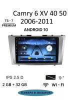 2 DIN магнитола TS7 для автомобиля Toyota Camry 6 XV40 XV50 2006-2011 с камерой заднего вида в комплекте. Автомагнитола оснащена Full HD сенсорным экраном с IPS матрицей размером 9 дюймов. Автомобильный магнитофон работает на операционной системе Андроид, что открывает широкий функционал данной модели: bluetooth, подключение камеры заднего вида, GPS навигация, встроенный микрофон, подключение сабвуфера, радио, WiFi, просмотр видео, установка Android приложений из Плеймаркета, встроенный эквалайзер. На головное устройство можно установить ваши любимые приложения, такие как проигрыватель Яндекс Музыка, навигатор Яндекс Карты. Андройд 2дин магнитолла подключается к мобильному телефону блютузом без использования аукс, что позволяет безопасно совершить звонок по телефону и установить беспроводное ссоеденение с мультимедийной системой. Процессорная автомагнитолла для Тойота Камри порадует качеством звука, а с помощью эквалайзера вы сможете настроить звук под аккустику салона вашего автомобиля. Поддерживается управление регулятором громкости и переключение треков кнопками на руле.2.5 стекло убурежет дисплей от мелких царапин, не давая экрану покрыться паутинкой. Несомненным приимуществом перед конкурентами являестя то, что 2din магнитафон можно установить в машину самостоятельно, в комплекте есть все необходимые аксессуары: переходная рамка, разъем, провода. Для локаций, где слабый радио и ГПС сигнал предусмотрены разьемы для подключения соответствующей антенны, благодаря чему значительно увеличивается качество зоны покрытия радиоприемника. Автотовары, автоэлектроника, это универсальный подарок любимому мужчине, мужу или парню на такие праздники как день рождения, 23 февраля, 14 февраля, новый год. / андроид