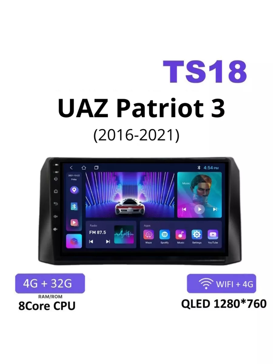 Премиальная автомагнитола для УАЗ Патриот УАЗ-3163 рестайлинг UAZ Patriot 3 2016 — 2021 оснащена мощным 8 ядерным процессором, благодаря которому магнитола работает быстро и плавно. С ярким и отзывчивым QLED экраном будет комфортно пользоваться головным устройством даже в солнечную погоду. Возможность подключения видеорегистратора, камеры заднего вида, функция разделения экрана, поддержка кнопок на руле, возможность скачивать любые привычные приложения из Google Play, возможность принимать звонки не отвлекаясь от дороги, поддержка CarPlay и Android Auto, точная GPS навигация — все это в одном флагманском устройстве! Для полного комфорта водителя и пассажиров в 2 дин магнитоле для УАЗ Патриот УАЗ-3163 рестайлинг For UAZ Patriot 3 2016 — 2021 помимо Wi-Fi модуля предусмотрен и слот для сим-карты, интернет всегда будет у Вас под рукой. А эквалайзер на 36 полос и возможность подключения усилителя и сабвуфера подарят неповторимые ощущения от прослушивания любимых треков. / андроид