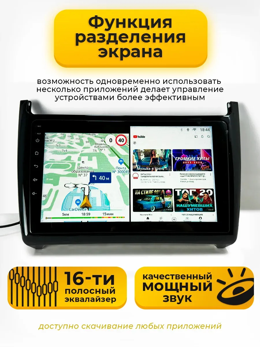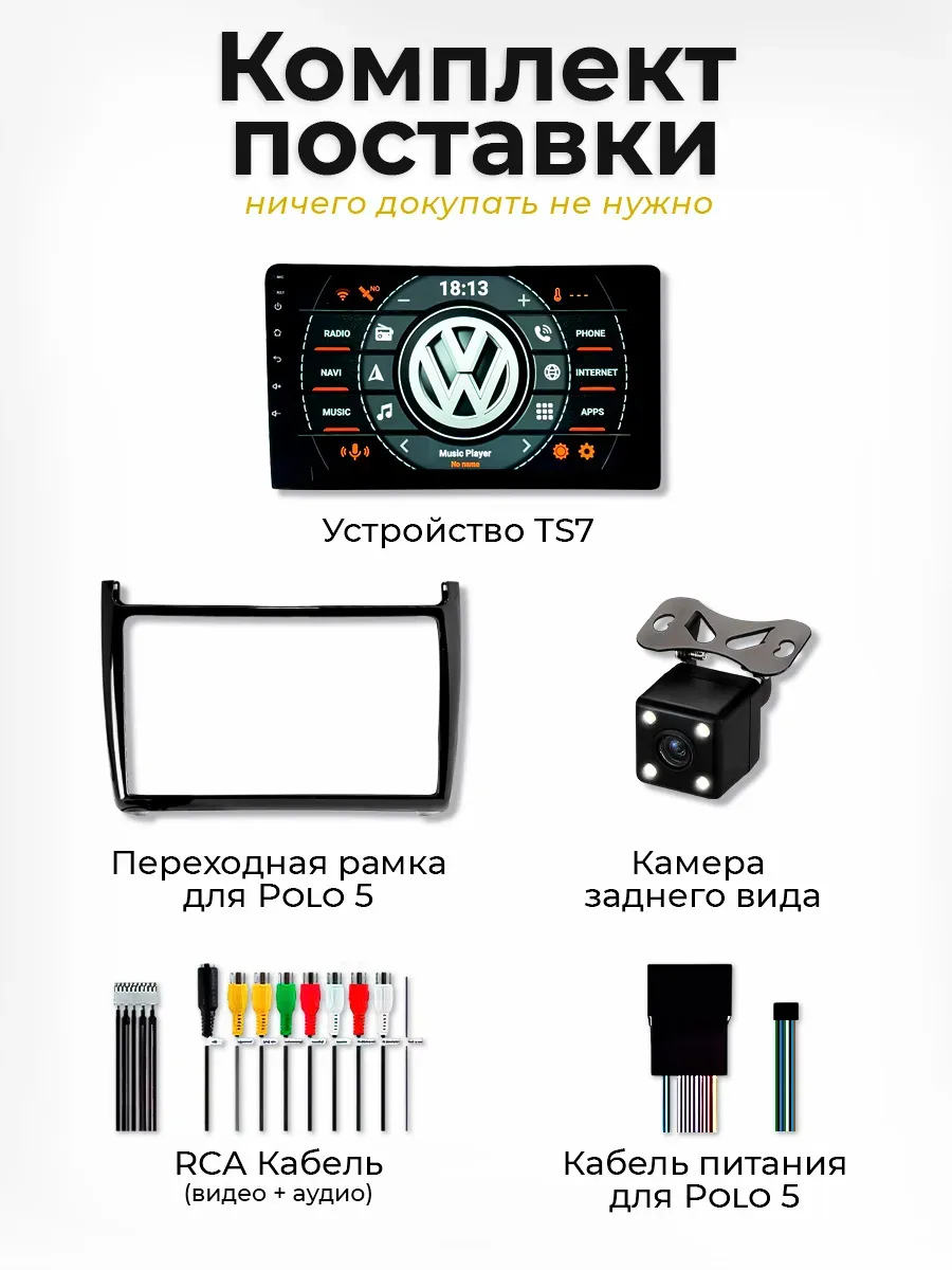 2 DIN магнитола TS7 для автомобиля Volkswagen Polo 5 2008-2020 с камерой заднего вида в комплекте. Автомагнитола оснащена Full HD сенсорным экраном с IPS матрицей размером 9 дюймов. Автомобильный магнитофон работает на операционной системе Андроид, что открывает широкий функционал данной модели: bluetooth, подключение камеры заднего вида, GPS навигация, встроенный микрофон, подключение сабвуфера, радио, WiFi, просмотр видео, установка Android приложений из Плеймаркета, встроенный эквалайзер. На головное устройство можно установить ваши любимые приложения, такие как проигрыватель Яндекс Музыка, навигатор Яндекс Карты. Андройд 2дин магнитолла подключается к мобильному телефону блютузом без использования аукс, что позволяет безопасно совершить звонок по телефону и установить беспроводное ссоеденение с мультимедийной системой. Процессорная автомагнитолла для Фольцваген Поло порадует качеством звука, а с помощью эквалайзера вы сможете настроить звук под аккустику салона вашего автомобиля. Поддерживается управление регулятором громкости и переключение треков кнопками на руле.2.5 стекло убурежет дисплей от мелких царапин, не давая экрану покрыться паутинкой. Несомненным приимуществом перед конкурентами являестя то, что 2din магнитафон можно установить в машину самостоятельно, в комплекте есть все необходимые аксессуары: переходная рамка, разъем, провода. Для локаций, где слабый радио и ГПС сигнал предусмотрены разьемы для подключения соответствующей антенны, благодаря чему значительно увеличивается качество зоны покрытия радиоприемника. Автотовары, автоэлектроника, это универсальный подарок любимому мужчине, мужу или парню на такие праздники как день рождения, 23 февраля, 14 февраля, новый год.